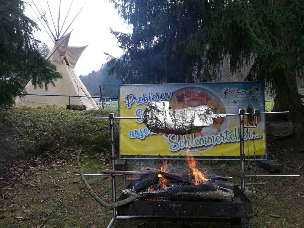 Auf Anfrage ist das Zelten im Waldbad Rückersdorf möglich. Die sanitären Anlagen stehen zur Verfügung und auf Wunsch können Grill, Feuerschale und Tipi genutzt werden, Radler, die auf dem Saale-Radwanderweg unterwegs sind, nehmen gern dieses Angebot wahr. Denn vom Saale-Radwanderweg, der durch Oberkrossen verläuft, sind es nur 1,3 km bis zum Waldbad.